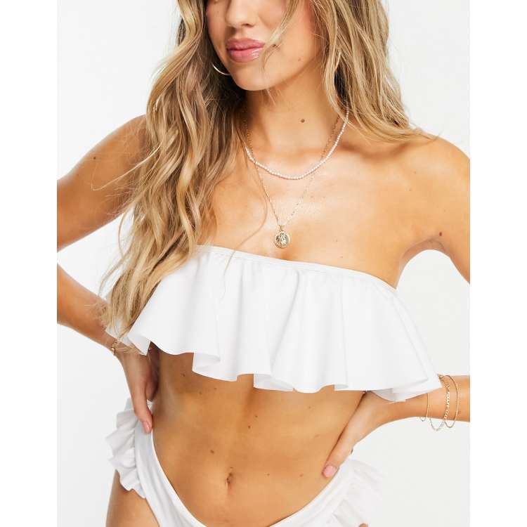 White ruffle hotsell bandeau bikini top
