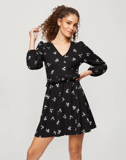 Black floral fit hotsell and flare dress