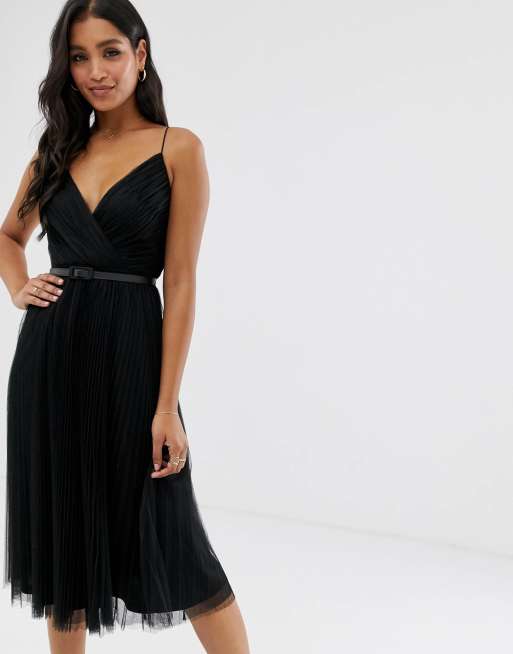 Asos design belted pleated tulle cami hotsell midi dress