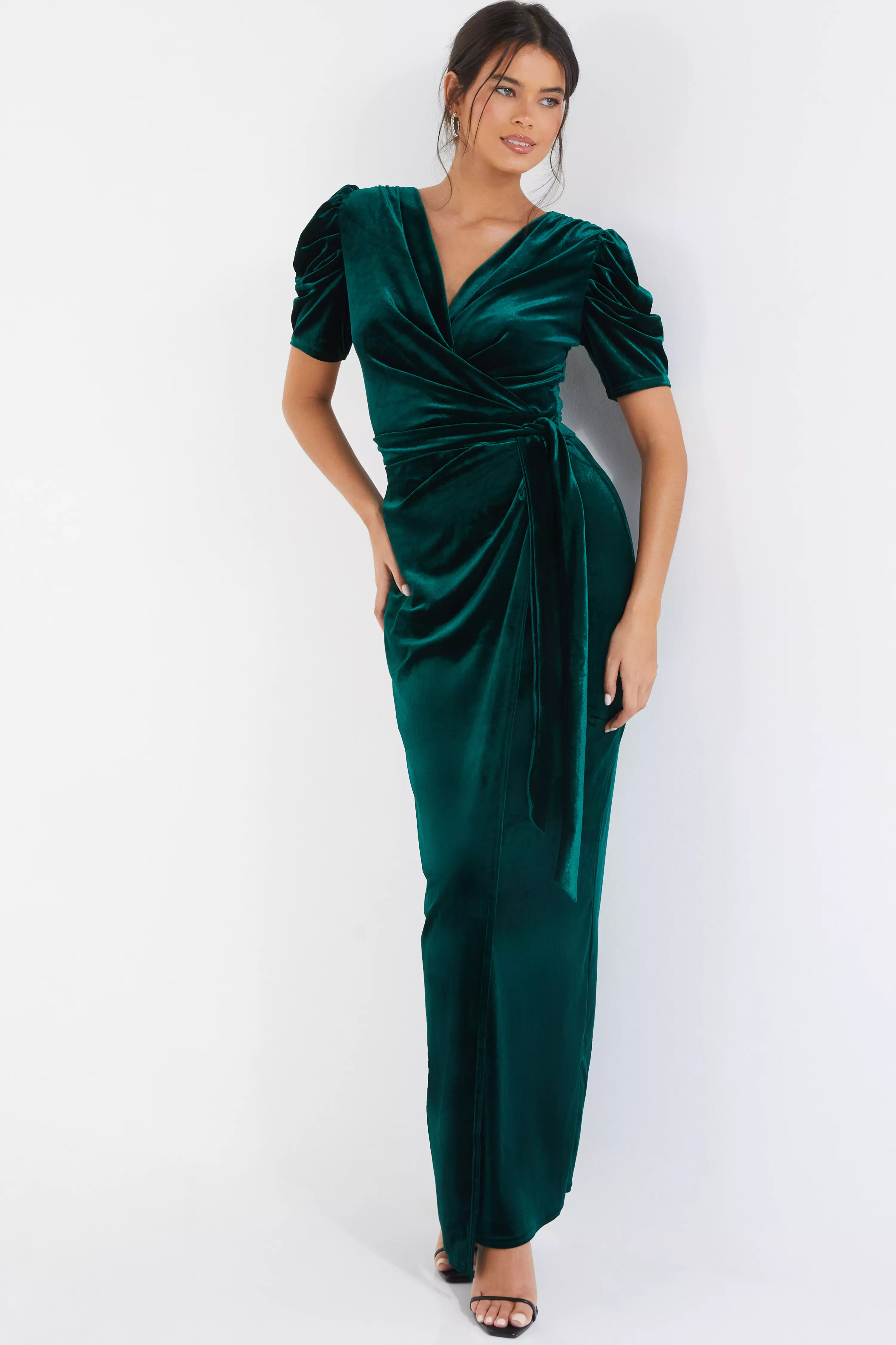 Quiz green hotsell velvet wrap dress