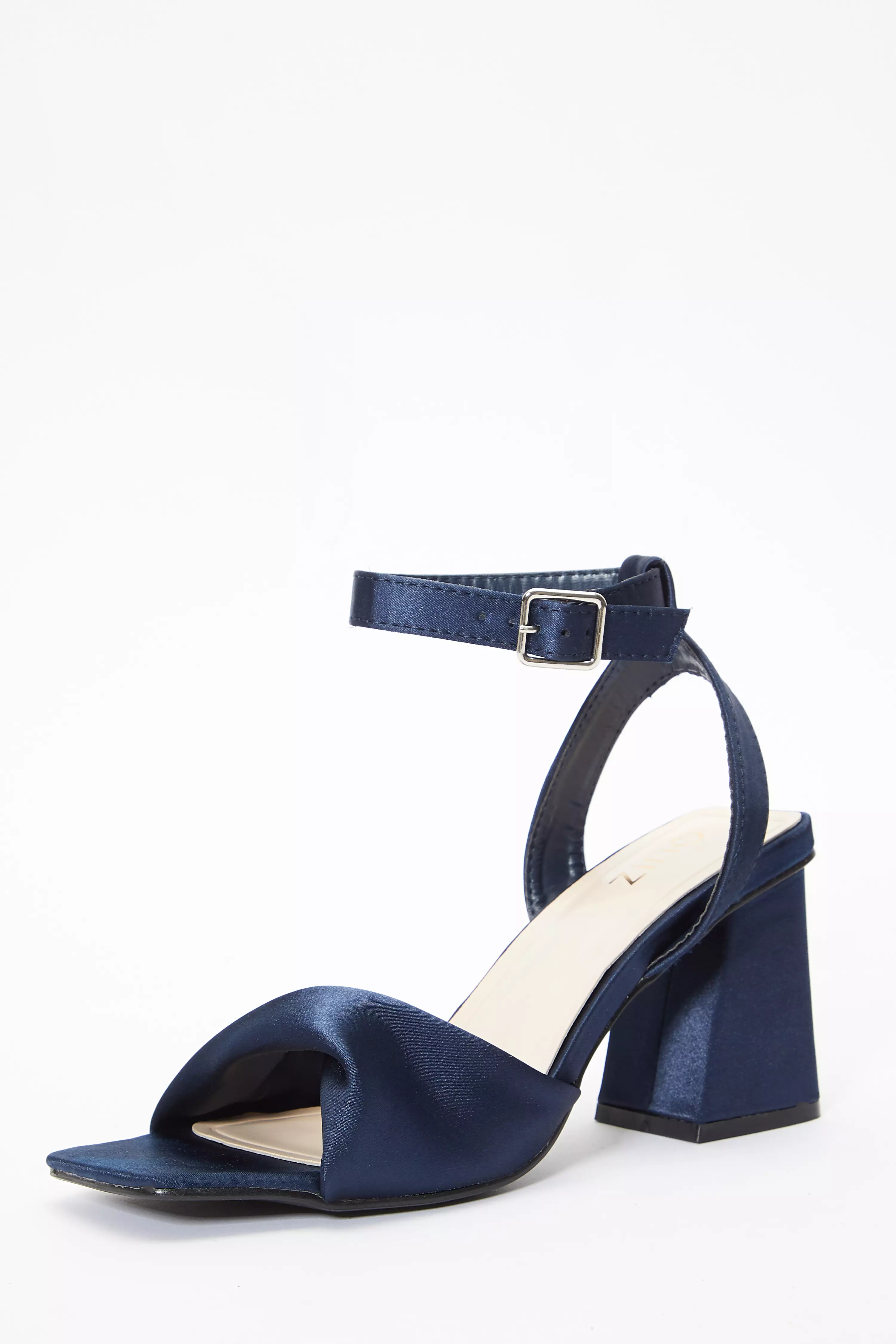 Product Item: Navy satin hotsell block heel sandals
