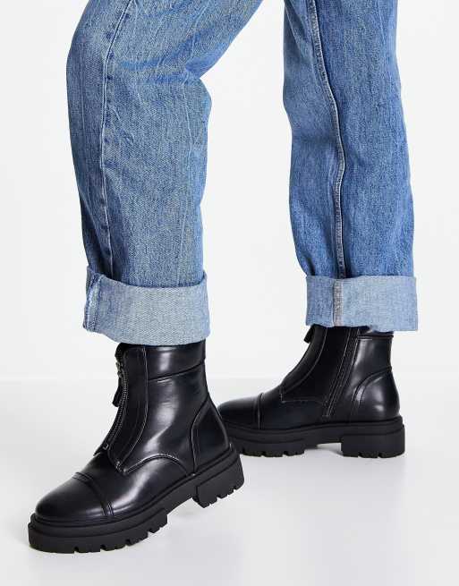 Flat zip hotsell up ankle boots