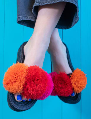 Sandals with hotsell fluffy pom poms