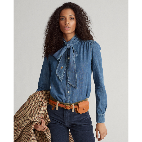 Tie neck hotsell denim shirt