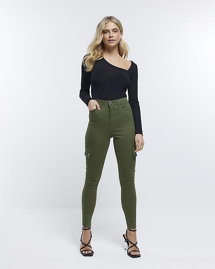 Khaki high hotsell waisted jeans