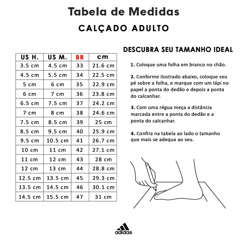 Product Item: Tabela de hotsell tamanhos adidas feminino