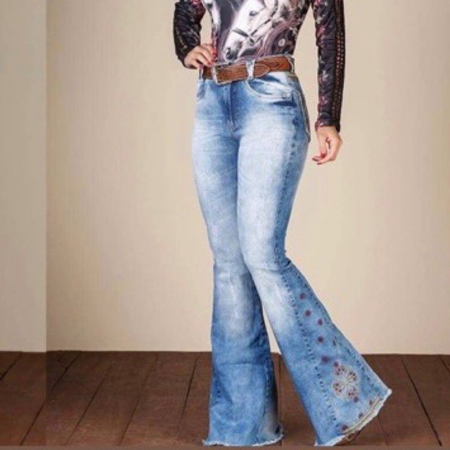 Product Item: Calças flare hotsell bordadas