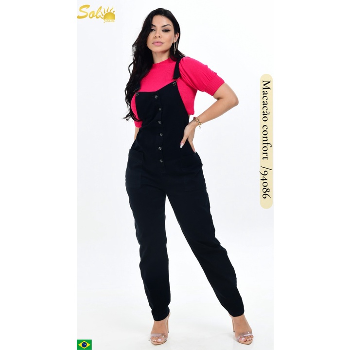 Product Item: Macacao preto hotsell longo jeans