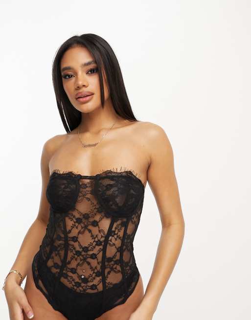 Black lace hotsell corset bodysuit